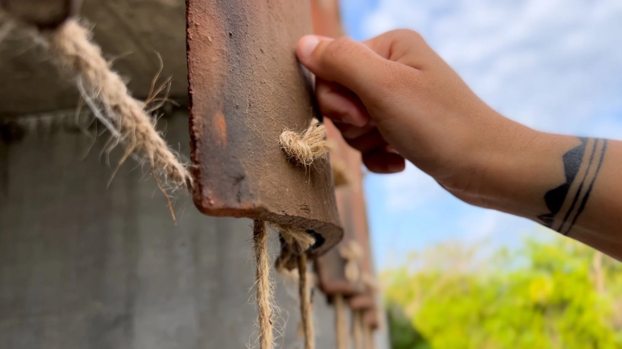 another kind of geometry is an audio response to Nicolas Kyrillou's 24 clay tile curtain, a work created using clay tiles from the region around Casa Wabi. In collaborating on this work, I played the tiles acoustically with my hands, and then manipulated the acoustic sound with a delay effect in Ableton Live. The resulting work engages with the ideas of memory around the piece.