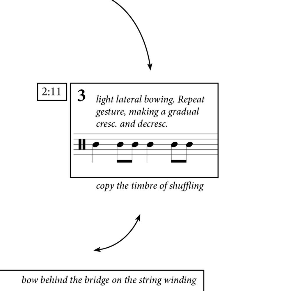 Casalmaggiore is one of my early works involving field recordings. The piece is inspired by the sound of particularly beautiful construction noise on the streets in a small town in Italy. As the recording wanders through the town, so is the performer instructed to wander between boxes of musical material, anticipating or mimicking the field recording as desired. The performer translates these sounds from everyday life onto traditional instruments using nontraditional playing methods.