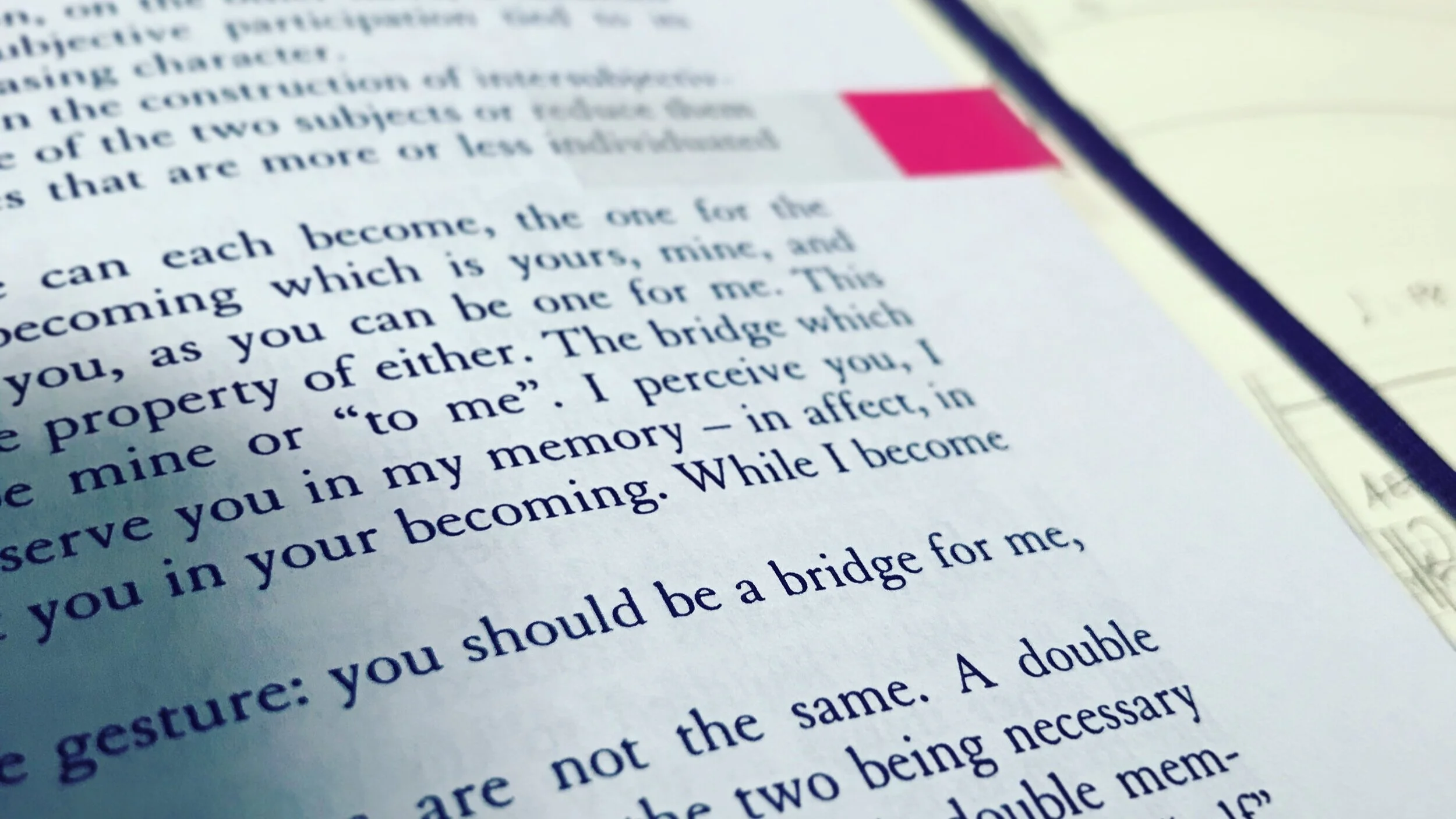 Thanks to perception, we can become, the one for the other, a bridge towards a becoming which is yours, mine, and ours. I can be a bridge for you, as you can be one for me. This bridge can never become the property of either. The bridge which I am for you will never be mine or “to me.” I perceive you, I create an idea of you, I preserve you in my memory—in affect, in thought—in order to assist you in your becoming. While I become me, I remember you. (p. 43)